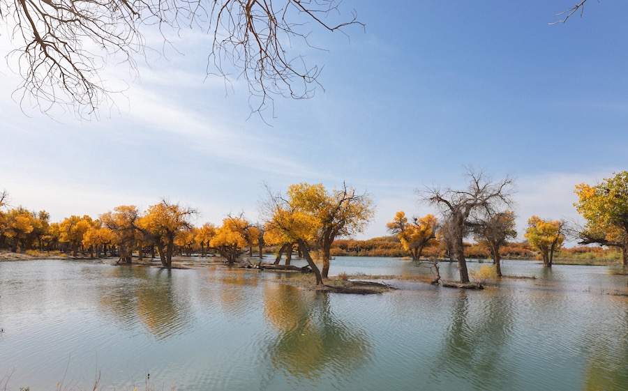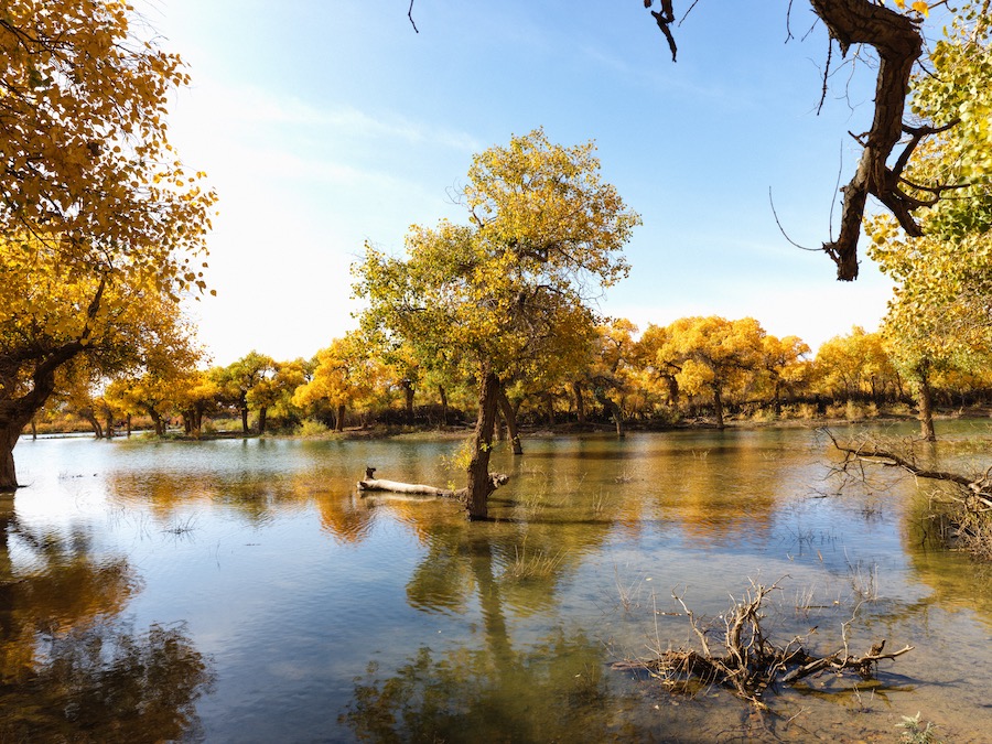 隨著氣溫逐漸下降,胡楊葉陸續(xù)轉(zhuǎn)黃,游客們被金色的胡楊林景觀所震撼,擺起各種姿勢(shì)拍照打卡,記錄美好瞬間,盡情享受輕松愉悅的旅程。