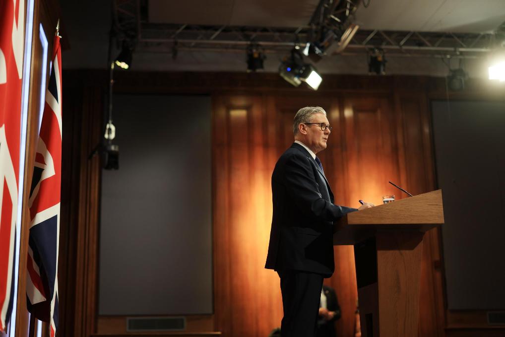 4月1日,英國首相斯塔默參加在倫敦舉行的新聞發(fā)布會。新華社發(fā)(英國首相府供圖)