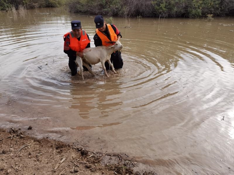 “請民警同志幫幫忙,我的羊群被困在河里了,這可是我的命根子??!”2020年9月8日8時許,蘇泊淖爾邊境派出所一個報(bào)警電話打破了清晨的寧靜,來電的是內(nèi)蒙古額濟(jì)納旗蘇泊淖爾蘇木牧民布某。原來,夜里黑河漲水,他家的幾十只羊被困,望著身陷險(xiǎn)境的羊群,焦急的布某打通了派出所的報(bào)警電話。