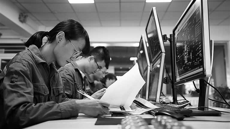 高新區(qū)企業(yè)中控室工作人員正在認真分析生產(chǎn)數(shù)據(jù)