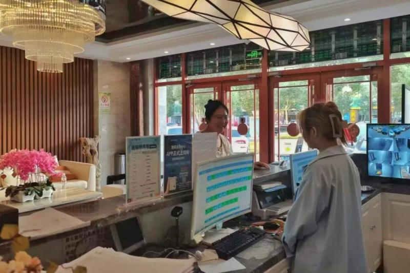 隨著旅游熱度持續(xù)攀升,額濟(jì)納旗各酒店入住率不斷走高,部分酒店房間需提前一周預(yù)訂。在額濟(jì)納旗鉑悅酒店,記者看到不少游客提著行李辦理入住,工作人員正熱情解答景點(diǎn)開放時間、用餐推薦等問題。據(jù)該酒店負(fù)責(zé)人單鴿介紹,7月以來,酒店幾乎每天都處于滿房狀態(tài)。