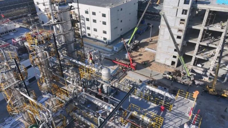 在內(nèi)蒙古靈圣蛋氨酸科技有限公司年產(chǎn)20萬(wàn)噸蛋氨酸項(xiàng)目建設(shè)現(xiàn)場(chǎng),一派熱火朝天的建設(shè)景象。建設(shè)者們正有序開展成品庫(kù)主體結(jié)構(gòu)澆筑、設(shè)備安裝調(diào)試等作業(yè)。