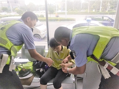 當(dāng)日,民警魏軍、張延旭、崔東迅在崗?fù)?nèi)執(zhí)勤,女孩兒進(jìn)入崗?fù)?,臉色蒼白滿頭是汗,沒說(shuō)幾句話便暈倒并且伴有輕微抽搐癥狀,民警迅速將女孩兒扶到椅子上,初步判斷可能是中暑或者是低血糖引起,民警一邊呼叫救援一邊將高糖分飲料和冰糖喂到女孩口中,并用紙片不停地扇涼降溫,5分鐘后女孩兒逐漸緩過(guò)來(lái),臉色也漸漸恢復(fù)血色。