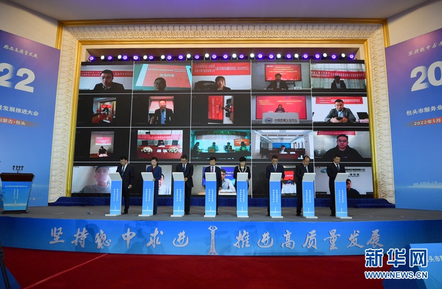 5月10日,包頭市服務(wù)業(yè)高質(zhì)量發(fā)展推進大會網(wǎng)絡(luò)簽約儀式。新華網(wǎng)發(fā)(安吉斯 攝)
