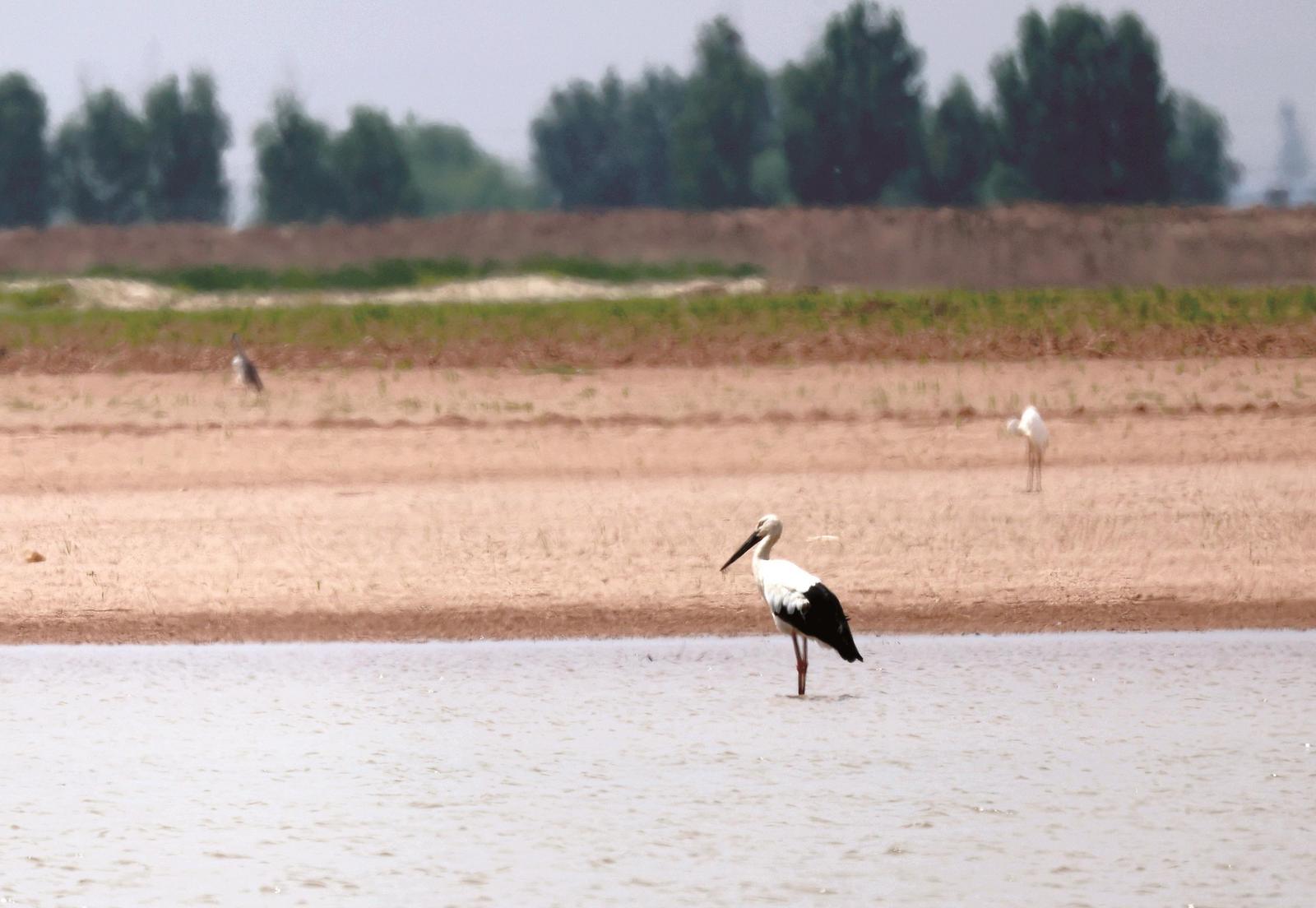 除東方白鸛外,本次監(jiān)測還記錄到同為國家一級保護動物的黑鸛,以及國家二級保護動物白琵鷺。此外,普通鸕鶿、蒼鷺、白鷺、翹鼻麻鴨等多種水鳥也活躍在該區(qū)域。