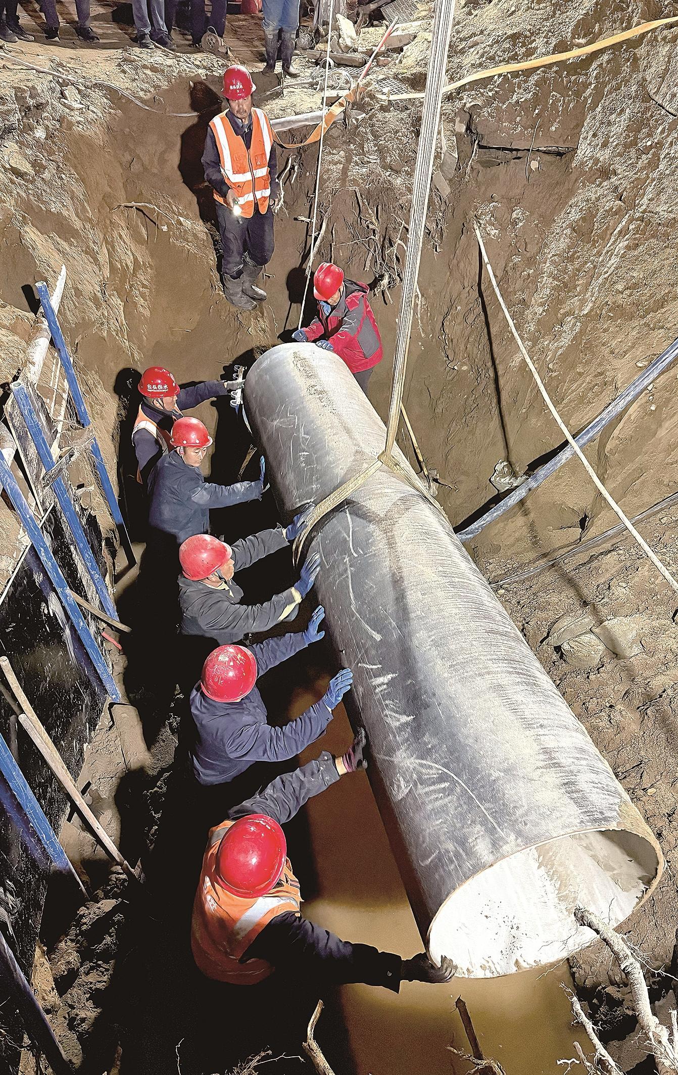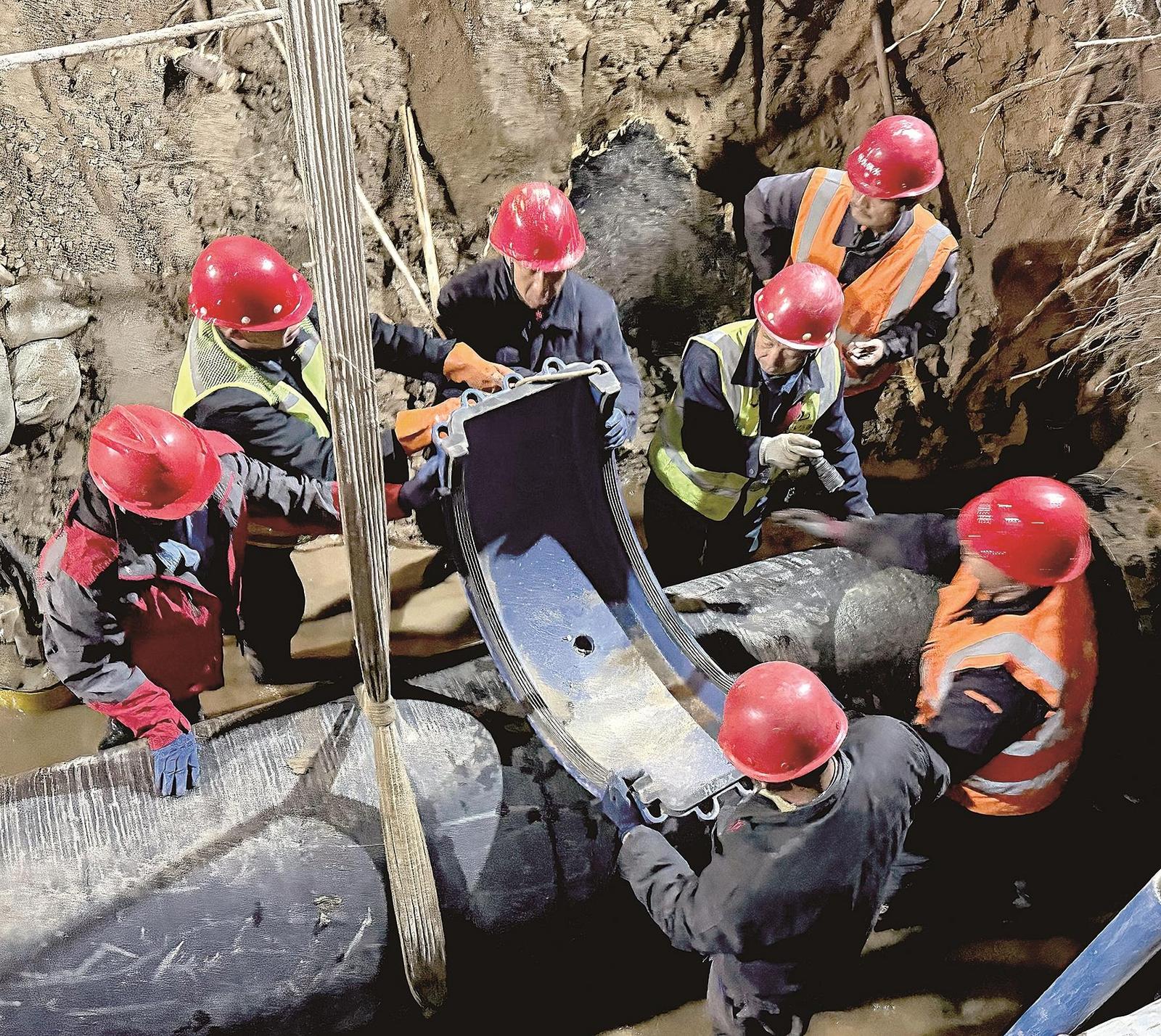 夜色漸深,氣溫持續(xù)下降,搶修現(xiàn)場卻燈火通明、熱火朝天。挖掘、排水、清理、焊接……每一個環(huán)節(jié)都爭分奪秒,井然有序。黨員干部沖鋒在前,帶頭跳入泥水中作業(yè);其他維修人員輪番上陣,困了就在工程車?yán)锊[一會兒,餓了就蹲在路邊匆匆扒幾口盒飯。頂風(fēng)冒雨的兩個日夜,他們心中只有一個信念:早一分鐘修復(fù),市民就早一分鐘恢復(fù)正常用水,城市秩序就早一分鐘恢復(fù)。