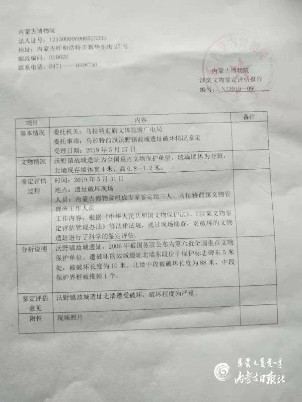 內(nèi)蒙古博物院出具的《涉案文物鑒定評(píng)估報(bào)告》