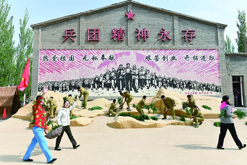 活動(dòng)在歡迎兵團(tuán)戰(zhàn)士的沉浸式演藝場(chǎng)景中開(kāi)始?!按笥凶鳛椤鞭r(nóng)事體驗(yàn)、“苦中作樂(lè)”兵團(tuán)大鍋飯?bào)w驗(yàn)等,讓活動(dòng)參與者們“穿越”到兵團(tuán)歲月。歌手科爾沁夫演唱了本屆藝術(shù)季主題曲《來(lái)到了磴口你就不想走》,將現(xiàn)場(chǎng)氣氛推向高潮。