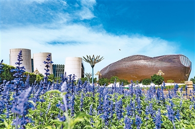 從外觀上來看,斜置的墻壁、反重力的扭曲線條、玻璃的通透與金屬的冷峻相結合等現代建筑手段,在七大建筑得到了恰如其分的展現。其內部空間結構同樣值得稱贊。在博物館,記者走遍各個展區(qū),從樓梯、窗戶、展區(qū)來看,其空間結構與功能布局是美觀和實用的完美融合。在圖書館,記者發(fā)現,遠山框進窗戶,綠色環(huán)繞四周。在這里,功能性的光芒與美學性的溫度和諧共生。