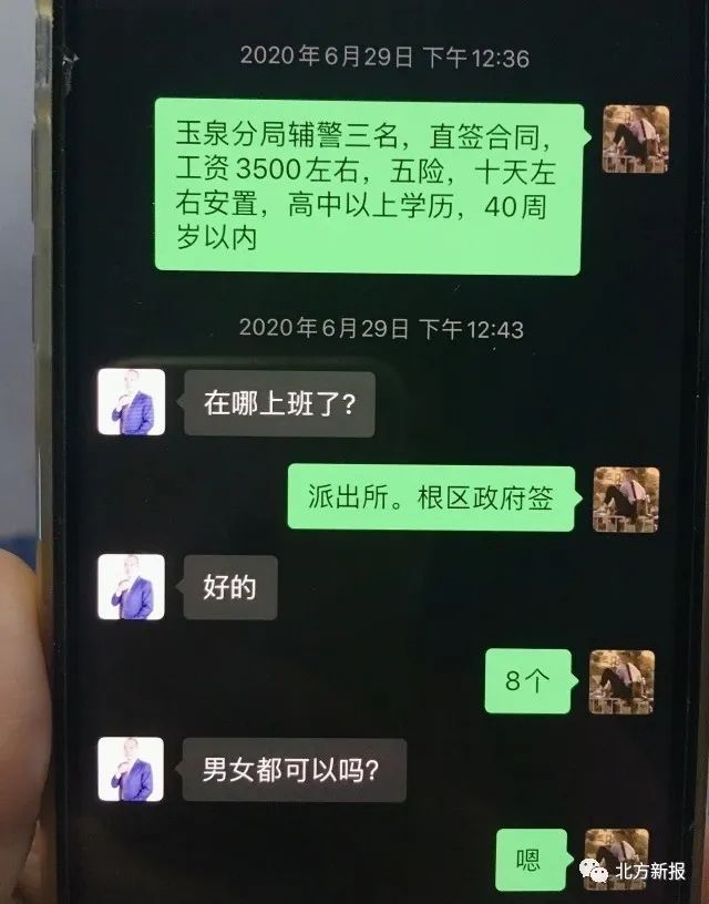6月30日,大南街派出所民警在日常工作中發(fā)現(xiàn),有人在朋友圈發(fā)布了這樣一條信息:“玉泉區(qū)公安分局招聘輔警3名,直簽合同,工資3500元左右,五險(xiǎn),十天左右安置,高中以上學(xué)歷……”信息末尾留有手機(jī)號碼。