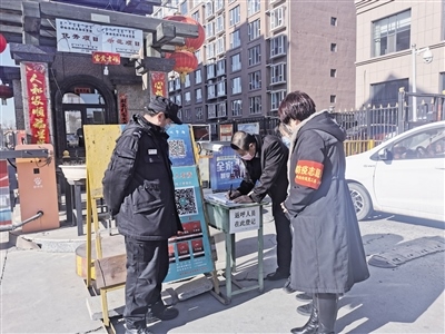 記者跟隨工作人員來到轄區(qū)地新街坊小區(qū),幾名社區(qū)工作人員正在小區(qū)門口負責疫情防控,“您好!請問您去哪棟樓?請下車登記信息。謝謝!”“請居民佩戴好口罩”……針對出入小區(qū)的人員,社區(qū)工作人員都一一仔細核查,宣傳防疫信息?!按汗?jié)長假過后,很多事都堆到今天了,所以格外忙?!卑⒗票甭飞鐓^(qū)黨總支書記王海瓊說,阿拉善北路社區(qū)很多網(wǎng)格員都放棄了與家人團聚的時間,主動下沉到各個小區(qū)開展疫情防控工作,實行24小時輪崗制,做好外地返呼人員登記和掃碼工作,保證轄區(qū)防控安全。除此之外,還積極參與禁燃煙花爆竹、垃圾分類宣傳等工作,讓政策落到實處。