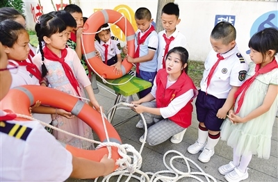 7月4日,呼和浩特市玉泉區(qū)五塔寺東街小學(xué)學(xué)生在暑期安全教育活動中學(xué)習(xí)救生圈使用方法。暑期來臨,學(xué)生溺水事件進(jìn)入高發(fā)期,7月2日,自治區(qū)黨委教育工委、教育廳發(fā)布了致全區(qū)學(xué)生家長的一封信,讓家長們充分認(rèn)識溺水事故的危害性,做好預(yù)防溺水的家庭教育,堅決杜絕溺水等安全事故的發(fā)生。 (記者 王磊 )