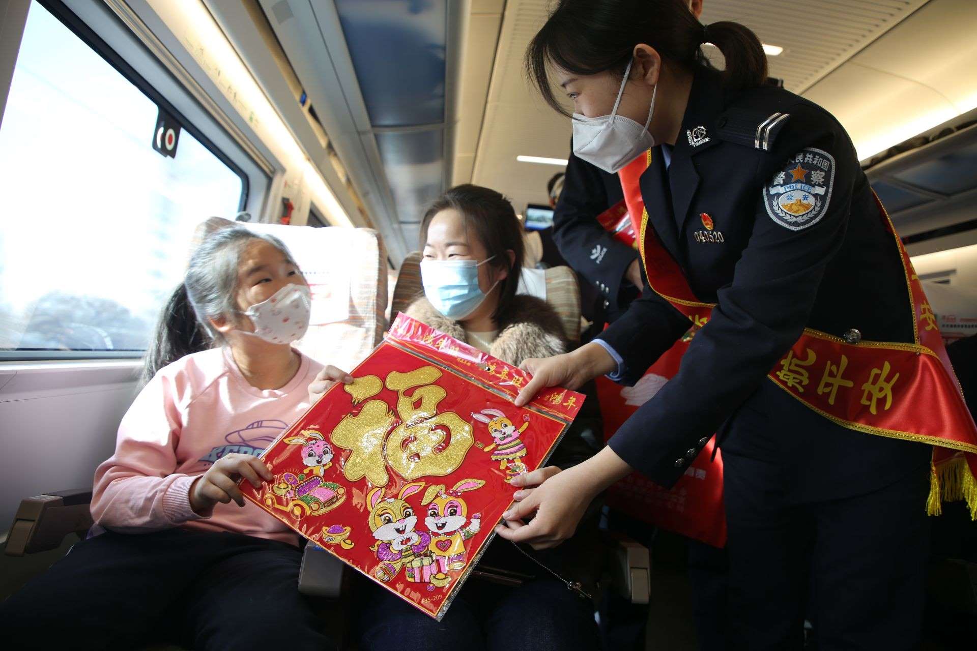 同時(shí),呼和浩特鐵路警方組織管內(nèi)各所隊(duì)、文藝小分隊(duì)進(jìn)村入戶、登乘列車,集中開展形式多樣、內(nèi)容豐富的主題宣傳活動(dòng),通過懸掛橫幅、擺放展板、現(xiàn)場(chǎng)答疑、發(fā)放宣傳手冊(cè)、贈(zèng)送“福”字等方式,向過往旅客講解出行安全常識(shí),提升旅客群眾的安全意識(shí)。