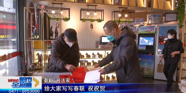秦毅 書(shū)法家:主要是為過(guò)年,給大家寫(xiě)寫(xiě)春聯(lián),祝祝賀,希望新的一年里萬(wàn)事如意,闔家歡樂(lè)。