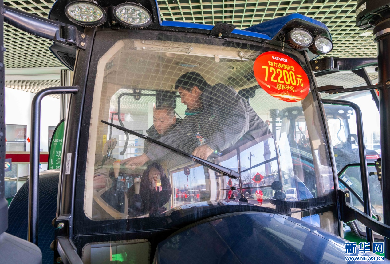 ??2月18日,在位于呼和浩特市玉泉區(qū)的一家農(nóng)機設備公司展銷大廳,農(nóng)戶在咨詢選購國家補貼拖拉機。新華網(wǎng)發(fā)(丁根厚 攝)