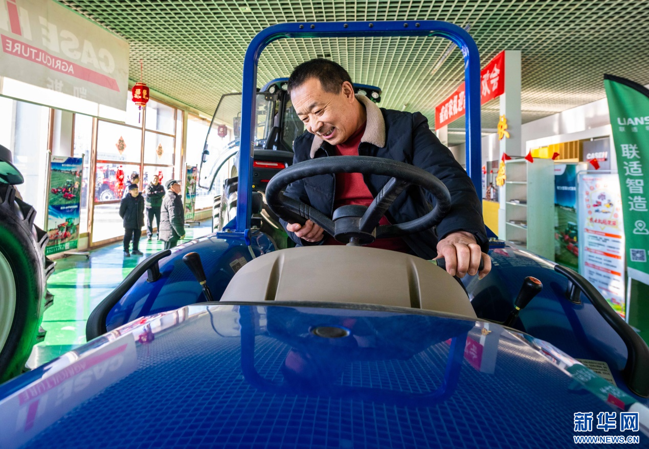 ??2月18日,在位于呼和浩特市玉泉區(qū)的一家農(nóng)機設備公司展銷大廳,農(nóng)戶在試駕拖拉機。新華網(wǎng)發(fā)(丁根厚 攝)