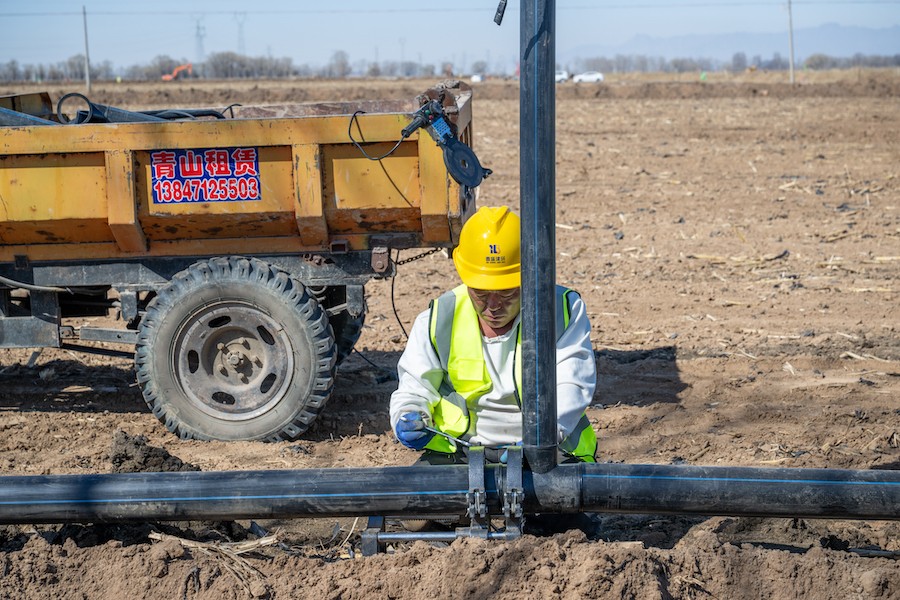 北疆新聞呼和浩特4月2日消息(楊凈毓 林則志)春為歲首,農(nóng)為行先。4月2日,內(nèi)蒙古呼和浩特土默特左旗高標準農(nóng)田建設(shè)現(xiàn)場,大型工程機械正在作業(yè),提升配套設(shè)施水平,改善農(nóng)田灌溉及耕作條件。