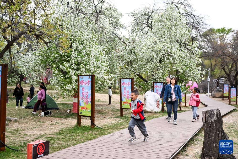 5月4日,游客在位于回民區(qū)東烏素圖村的烏素圖杏花谷景區(qū)游玩。