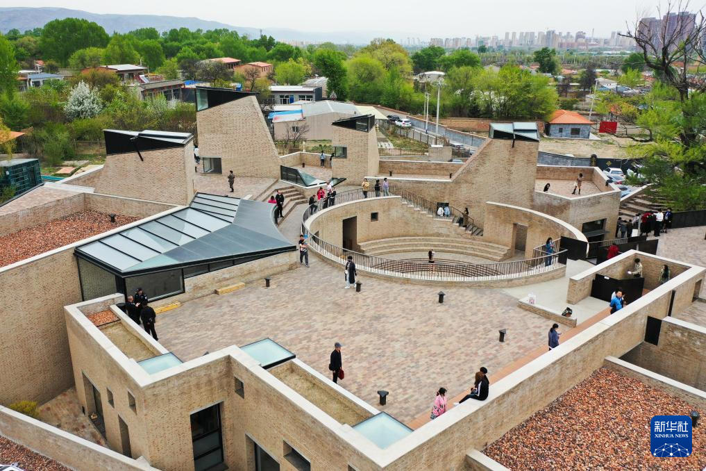 這是5月4日拍攝的位于回民區(qū)西烏素圖村的回空間藝術(shù)中心(無人機照片)。
