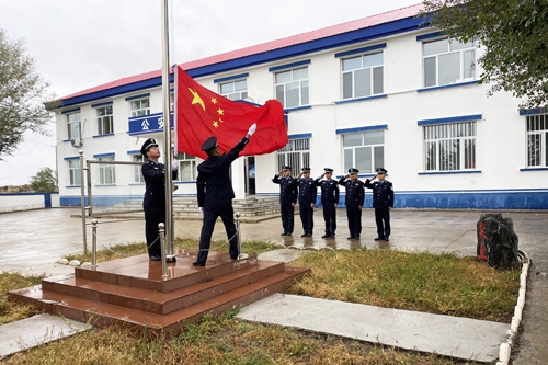 9月18日上午,內(nèi)蒙古塔日根諾爾邊境派出所舉辦升國旗儀式,紀念“九一八”事件89周年。