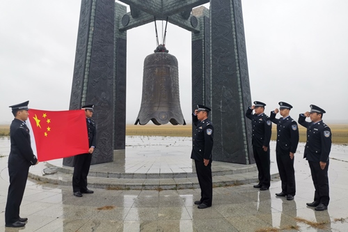 上午8時整,在塔日根諾爾邊境派出所,伴隨著雄壯的國歌聲,五星紅旗冉冉升起,全體民警肅然挺立,向在抗日戰(zhàn)爭中死難的同胞默哀。在諾門罕戰(zhàn)役紀念廣場的和平大鐘前,諾門罕布日德邊境派出所民警面向國旗,舉起右手,重溫人民警察誓詞,錚錚誓言響徹天際,感染并激勵著民警扎根北疆、建功北疆。巡邊途中,額布德格邊境派出所民警為界碑拭去灰塵,以獨有的方式向無數(shù)為國捐軀的革命烈士致以崇高敬意。罕達蓋邊境派出所組織觀看了《九一八事變》,通過觀影,警醒民警時刻銘記使命職責,勿忘國恥,發(fā)奮圖強。