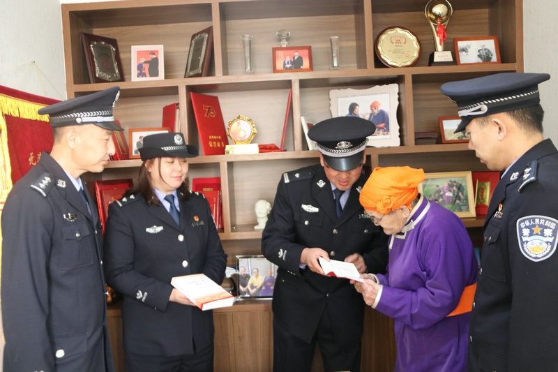 5月6日上午,民警們手捧鮮花來到都貴瑪老人家。一進(jìn)家門,便為都貴瑪老人送上了節(jié)日的祝福。民警們與都貴瑪老人嘮起了家常,詳細(xì)詢問老人的身體狀況和生活情況。大家你一言,我一語,聊著聊著,就談到了當(dāng)前開展的黨史學(xué)習(xí)教育。民警們把自己的學(xué)習(xí)體會(huì)和收獲一一向都貴瑪老人作了匯報(bào)。都貴瑪老人說,自己也通過觀看《新聞聯(lián)播》了解到國家十四五開局之年和全黨開展黨史學(xué)習(xí)教育的相關(guān)內(nèi)容。特別是看到民警們帶來的黨史書籍時(shí),都貴瑪老人和大家講述了他們那一代人如何利用蒙文版書籍學(xué)習(xí)黨章黨史的故事,再次回顧了習(xí)近平總書記為她授予“人民楷?!眹覙s譽(yù)稱號(hào)獎(jiǎng)?wù)聲r(shí)的自豪和激動(dòng)。