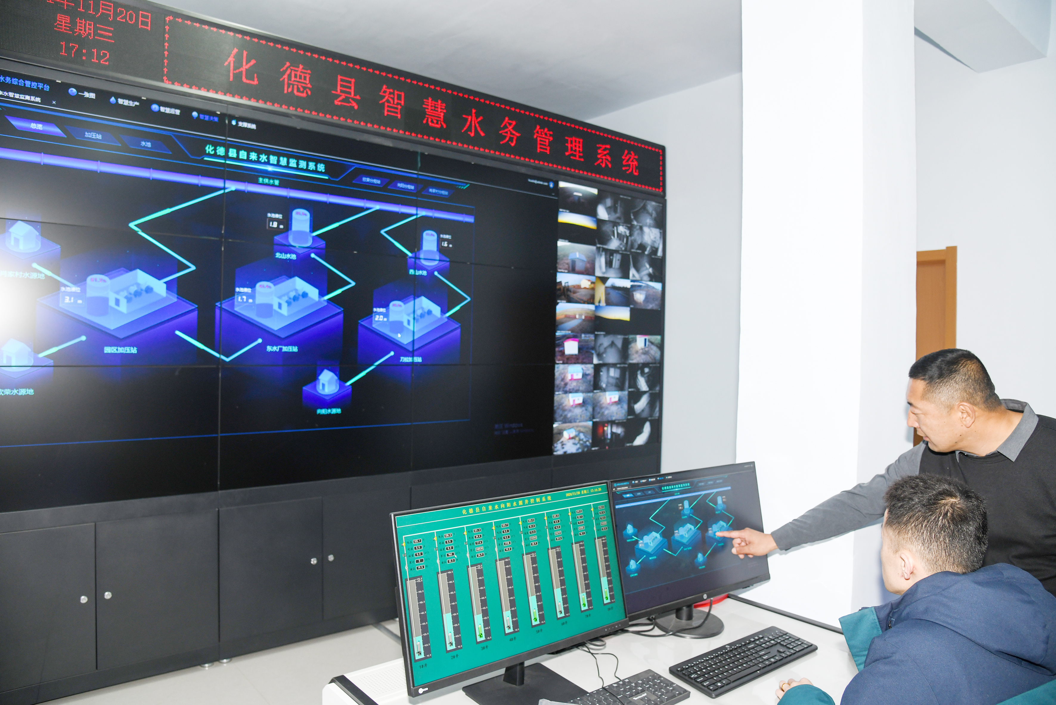 工作人員通過智能化控制系統(tǒng)對化德縣地下水開采量進行實時監(jiān)測?!?/span>