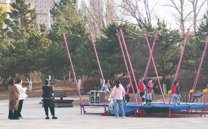 走進(jìn)烏蘭察布植物園,映入眼簾的是長(zhǎng)青的松柏,遠(yuǎn)處湖水已經(jīng)融化,倒映著正在漫步的市民的身影。家長(zhǎng)帶著放學(xué)的孩子們?cè)谥参飯@里散步玩耍,呼吸著新鮮的空氣。結(jié)伴而行的年輕人一起討論期待著花開(kāi)樹綠后的場(chǎng)景。