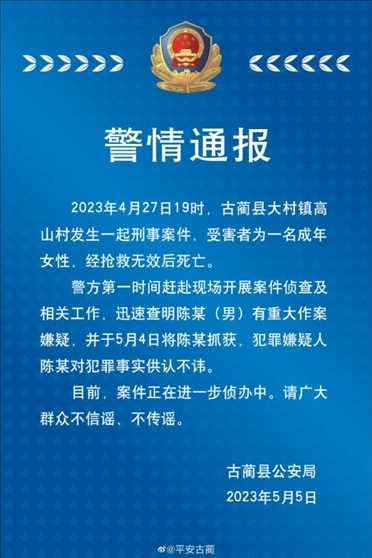 ·四川古藺偵破一起刑事案件,發(fā)布懸賞通告后七日內告破。