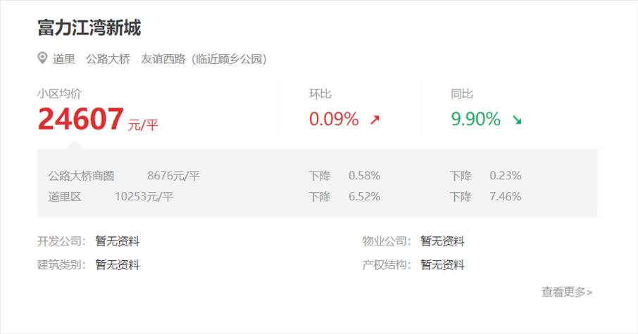 公開信息顯示,富力江灣新城地處哈爾濱道里區(qū)沿江核心地段,項目一期于2014年10月29日完成交房。房天下數(shù)據(jù)顯示,富力江灣新城目前二手房均價為2.46萬元/平方米。