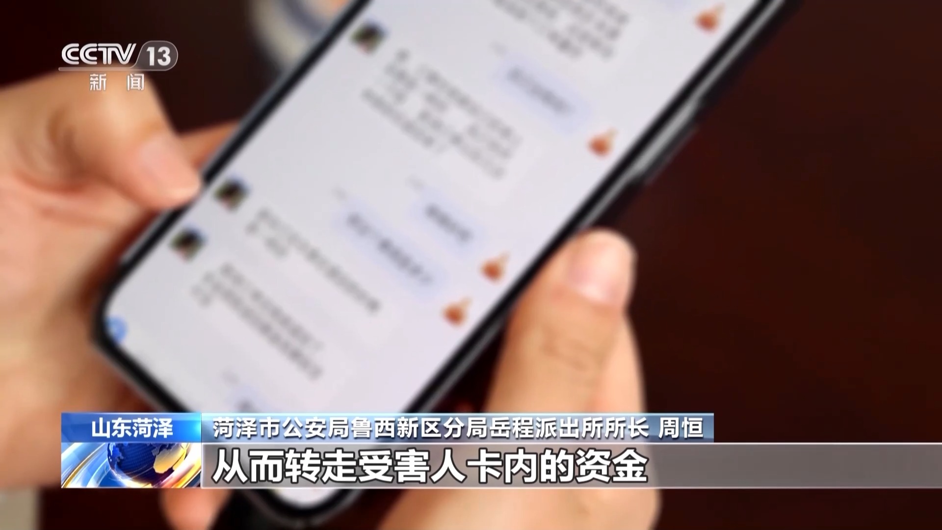 菏澤市公安局魯西新區(qū)分局岳程派出所所長 周恒:“共享屏幕”實質就是手機屏幕上顯示的內容,能夠讓對方同步看到,包括彈窗顯示的短信、微信、App推送的信息等。也就是說,你在手機上的任何操作,包括輸入的密碼、驗證碼、解鎖的過程等,對方都能實時看見。一旦受害者使用此功能,詐騙人員就能看到受害人手機上的所有信息,從而轉走受害人卡內的資金。