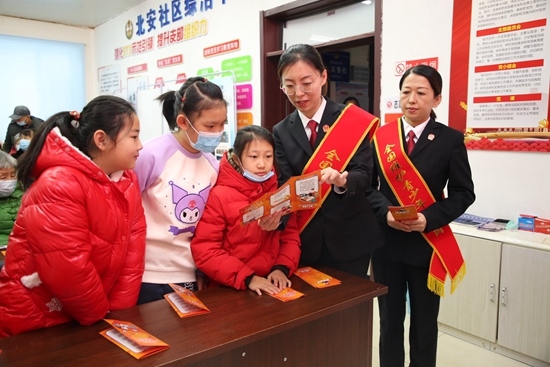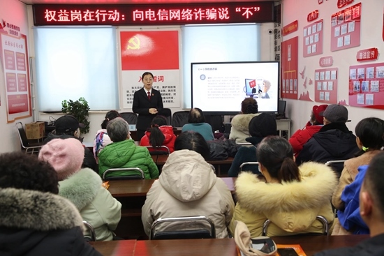 吉林省吉林市船營(yíng)區(qū)人民法院在向陽(yáng)街道北安社區(qū)開(kāi)展“向電信網(wǎng)絡(luò)詐騙說(shuō)‘不’”普法講座。