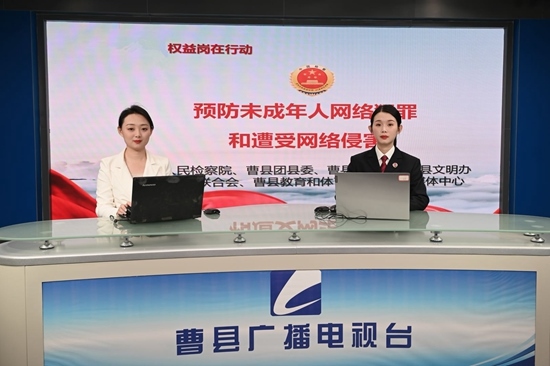 山東省曹縣人民檢察院未成年人檢察部在電視臺(tái)開(kāi)展直播課程。