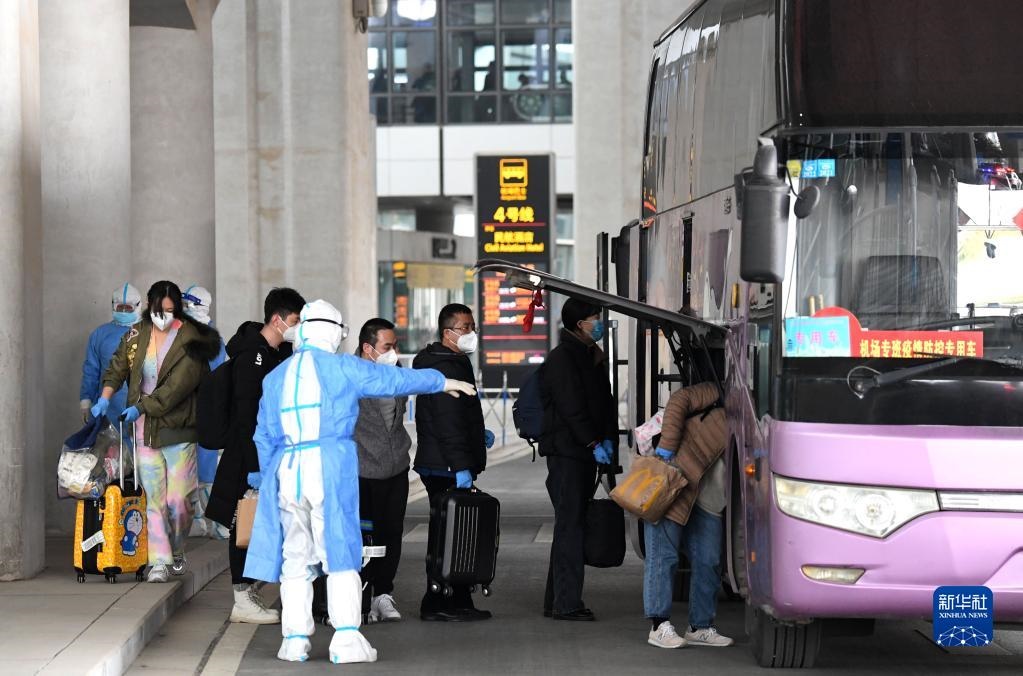 3月5日,抵達(dá)鄭州新鄭國(guó)際機(jī)場(chǎng)的中國(guó)公民準(zhǔn)備前往隔離酒店。當(dāng)日上午9時(shí)46分,第二架接返自烏克蘭撤離中國(guó)公民臨時(shí)航班安全抵達(dá)鄭州。新華社記者 郝源 攝