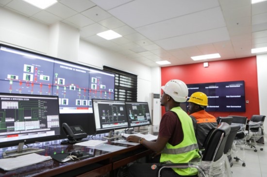 2月4日,在烏干達基里揚東戈,卡魯瑪水電站的職員在水電站主開關(guān)站內(nèi)工作。新華社發(fā)