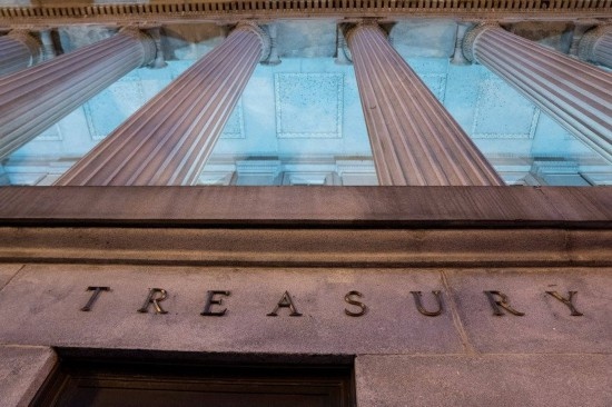 這是1月20日在美國首都華盛頓拍攝的財政部大樓。 新華社記者劉杰攝
