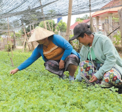 老撾金花村村民在中國(guó)—老撾合作農(nóng)作物優(yōu)良品種試驗(yàn)站的幫助下種植大棚蔬菜。本報(bào)記者 孫廣勇攝