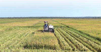 中國(guó)—烏干達(dá)農(nóng)業(yè)合作產(chǎn)業(yè)園里,員工正在收割豐收的旱稻。中國(guó)—烏干達(dá)農(nóng)業(yè)合作產(chǎn)業(yè)園供圖