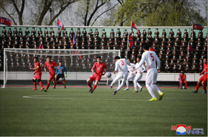 報道稱,首先進行了朝鮮內(nèi)閣和國防省職員的足球比賽,兩隊攻防激烈,最終以1:1戰(zhàn)平,隨后進入了點球大戰(zhàn),國防省隊以5:3力克內(nèi)閣隊。