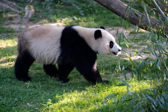 4月19日,在美國(guó)華盛頓史密森學(xué)會(huì)國(guó)家動(dòng)物園,大熊貓“小奇跡”在散步。新華社記者劉杰攝