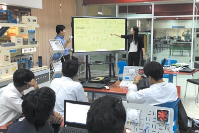 7年多來,泰國大城技術(shù)學院魯班工坊的學生們交出了出色的成績單:首屆“職業(yè)教育寶石王杯”大賽金牌、首屆鐵道運輸系統(tǒng)邀請賽冠軍獎、泰國自動化生產(chǎn)線賽項金獎、東盟第十一屆技能大賽“自動化生產(chǎn)線”賽項銅獎……“學生們?yōu)檫M入魯班工坊學習而自豪?!碧﹪蟪羌夹g(shù)學院院長瑪尤麗表示,魯班工坊不僅提升了泰國學生的語言和技術(shù)能力,還為他們提供了更為廣闊的發(fā)展機遇。“通過學習,學生們熟悉了中國技術(shù)、產(chǎn)品和工藝,并對接本土企業(yè)需求,實現(xiàn)全方位發(fā)展,在就業(yè)市場極具競爭力?!?/p>