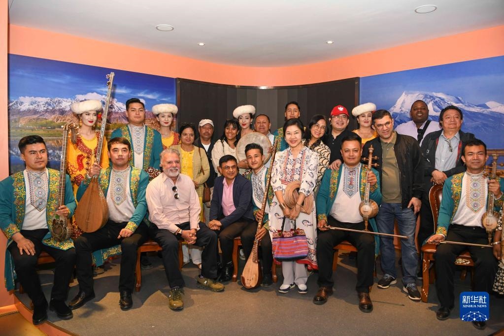 新疆自古以來是多元文化并存的地區(qū)。在疏附縣新疆民族樂器村,當(dāng)?shù)貥氛哂脽嵬吒?、都塔爾等傳統(tǒng)樂器為參訪團一行演奏歌曲。巴西駐廣州總領(lǐng)事杜飛對此印象深刻:“我曾在中亞地區(qū)工作多年,對這些樂器很熟悉,新疆多元文化融合現(xiàn)狀展示出各民族可以很好地生活在一起。”
