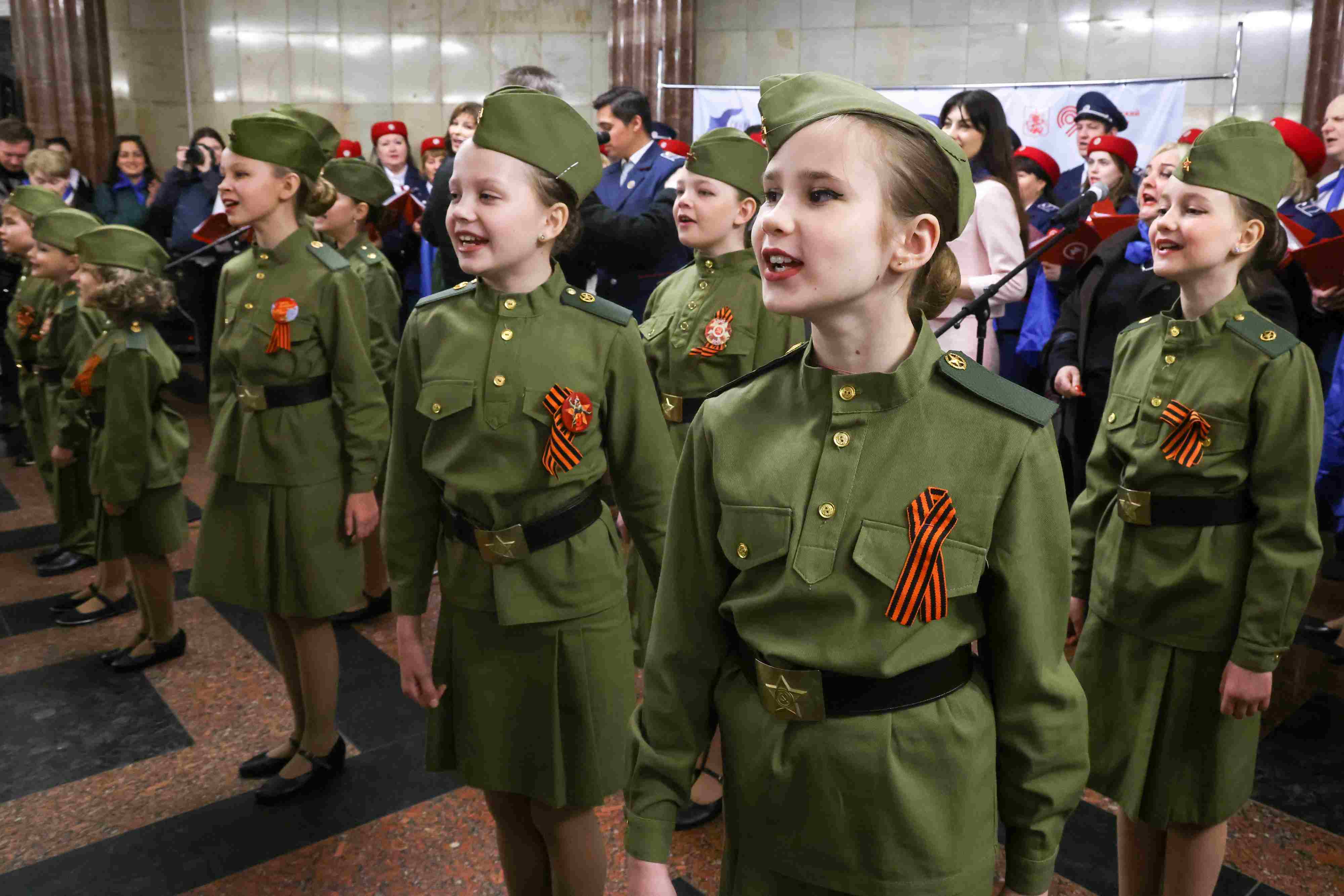 當(dāng)?shù)貢r(shí)間2023年5月8日,俄羅斯莫斯科,兒童在紀(jì)念二戰(zhàn)勝利78周年的音樂會(huì)上表演。 視覺中國(guó)