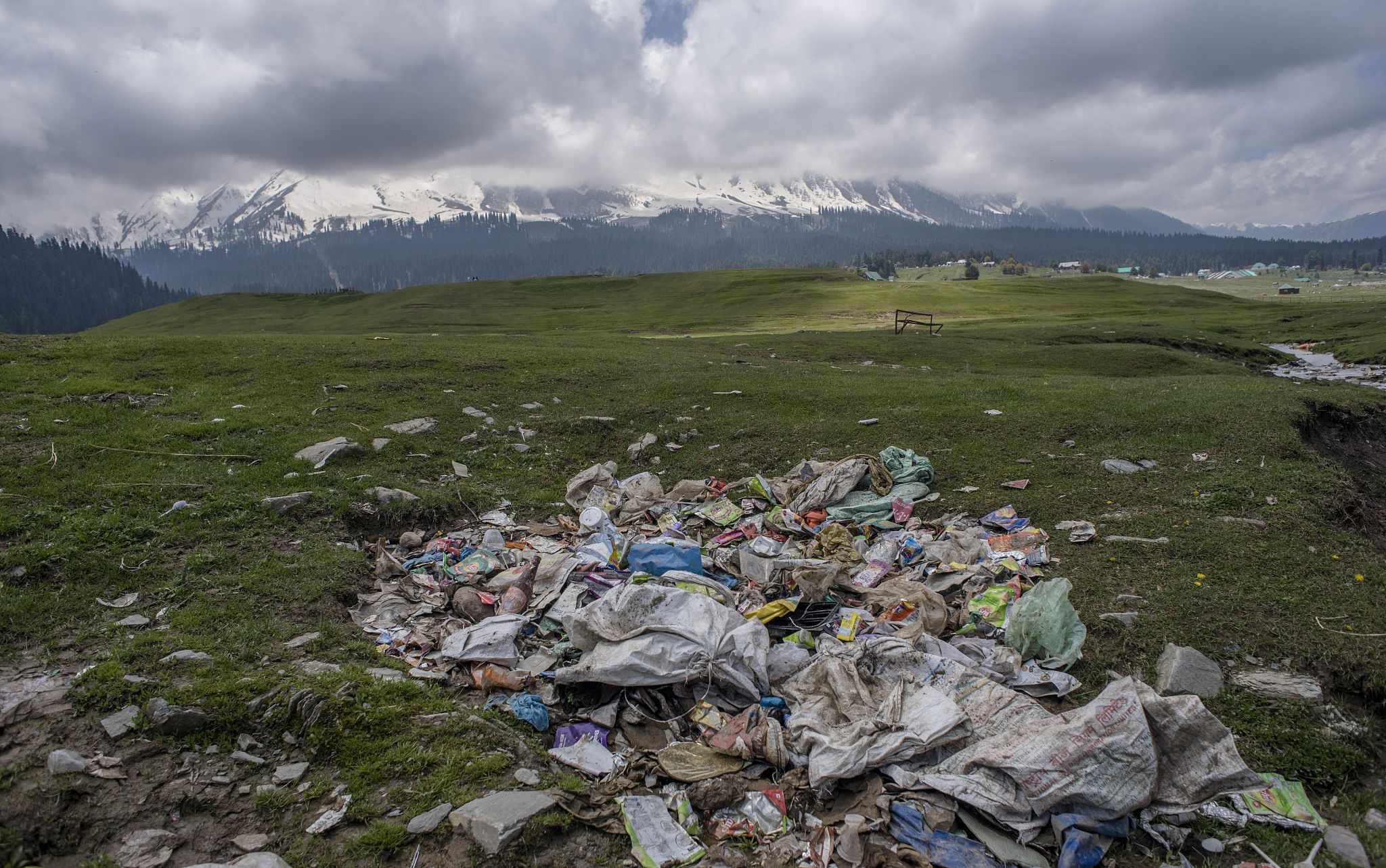 古爾瑪格,著名的滑雪勝地。在夏天,這個勝地擠滿了避暑的游客并留下了大量的垃圾。垃圾的堆積對高山生態(tài)造成了嚴(yán)重威脅,也對冰川溪水造成了嚴(yán)重威脅。盡管指示牌提醒人們禁止攜帶塑料,但對攜帶食物和水沒有限制。環(huán)保人士警告說,古爾瑪格及其周邊地區(qū)的到處都是被丟棄的塑料垃圾。