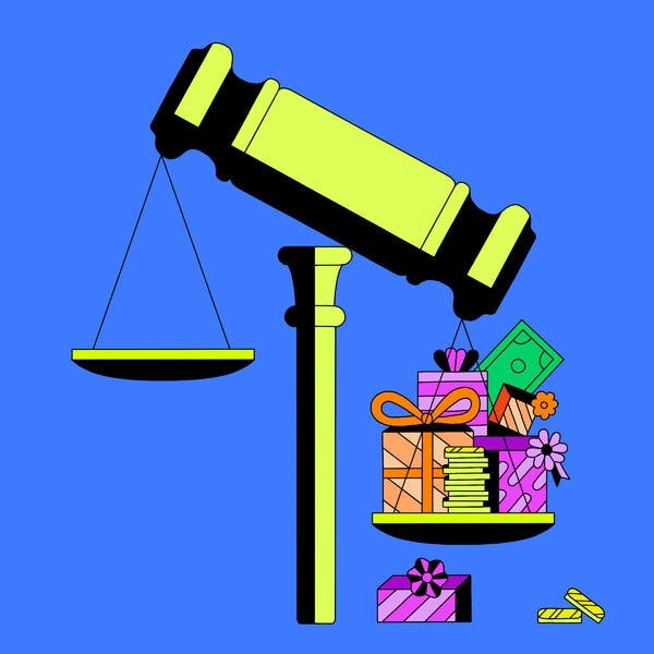 這聽起來(lái)很像克羅和托馬斯的關(guān)系,但法院認(rèn)為這樣的安排并不違法。法院裁定,酬金法要求特定的禮物必須與特定的官方行為相聯(lián)系。如果沒(méi)有這樣的直接聯(lián)系,在一段時(shí)間內(nèi)向公職人員贈(zèng)送一系列的禮物并不違反法規(guī),即使目的是討好可能為送禮者帶來(lái)利益的官員。