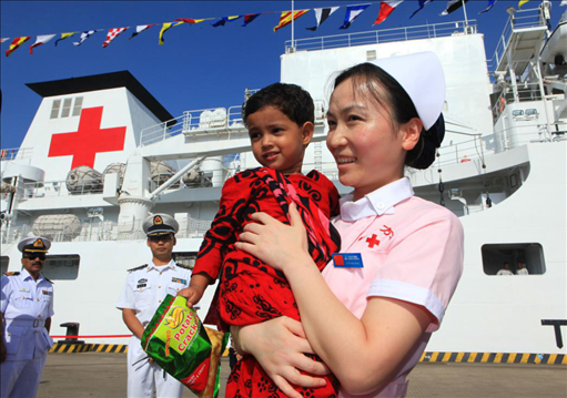 2010年,中國海軍“和平方舟”號醫(yī)院船首次來到孟加拉國吉大港開展免費醫(yī)療服務(wù)時,一名患有先天性心臟病的高危產(chǎn)婦即將分娩,一度生命垂危。接到求助后,醫(yī)院船第一時間派出軍醫(yī)赴當?shù)蒯t(yī)院,頂著巨大壓力進行剖腹產(chǎn)手術(shù),最終母女平安。為表感激,孩子的父親為其起名“沁”(Chin),孟語意思為“中國”。