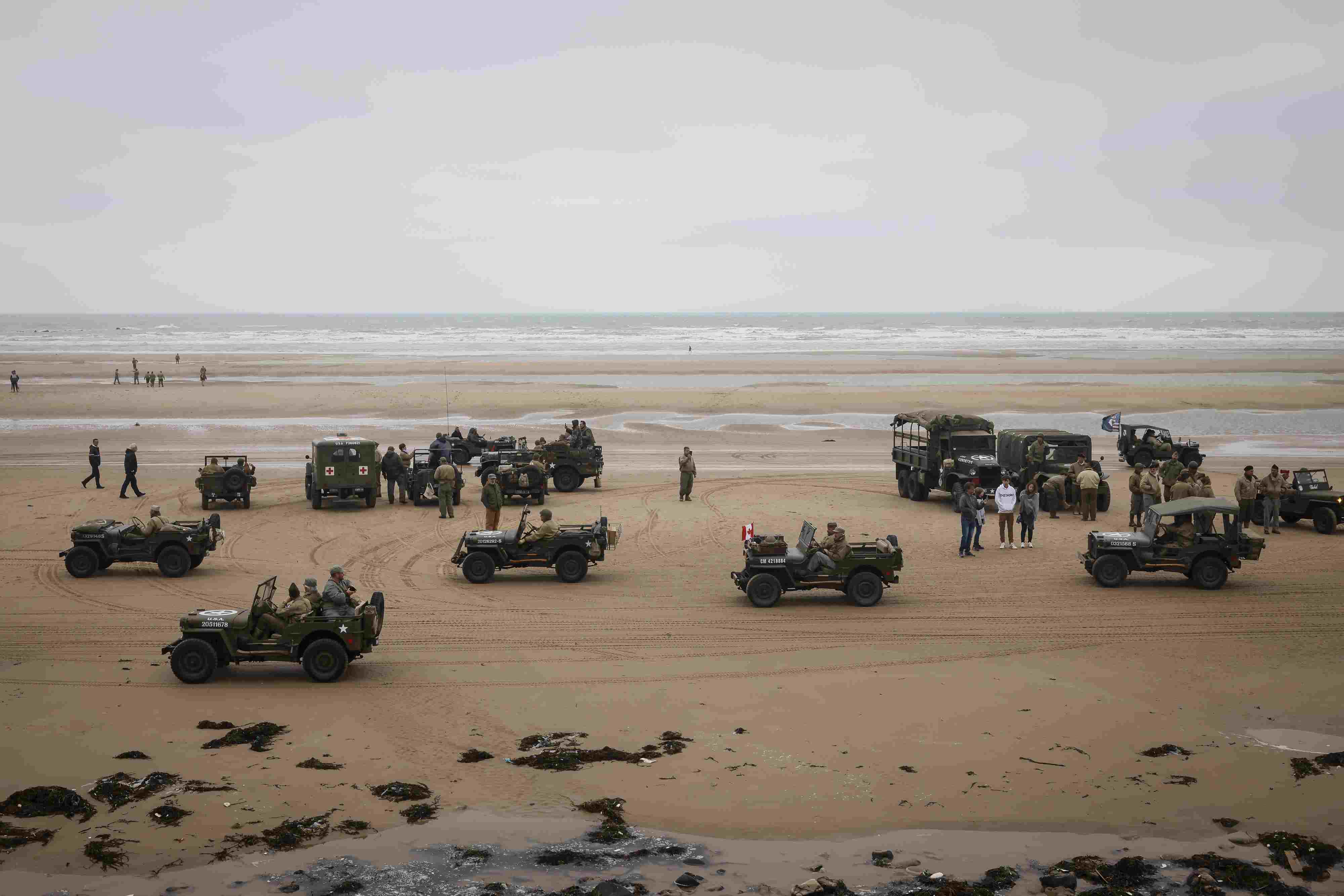 當(dāng)?shù)貢r間2023年6月6日,法國奧馬哈海灘,人們重現(xiàn)戰(zhàn)爭場景紀(jì)念諾曼底登陸。1944年6月6日黎明時分,近16萬盟軍在諾曼底登陸。 視覺中國