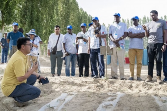 2017年,新疆生地所與泛非“綠色長(zhǎng)城”組織聯(lián)合共建泛非“綠色長(zhǎng)城”研究中心,新疆生地所作為技術(shù)支撐方提供技術(shù)培訓(xùn)、試驗(yàn)示范等。