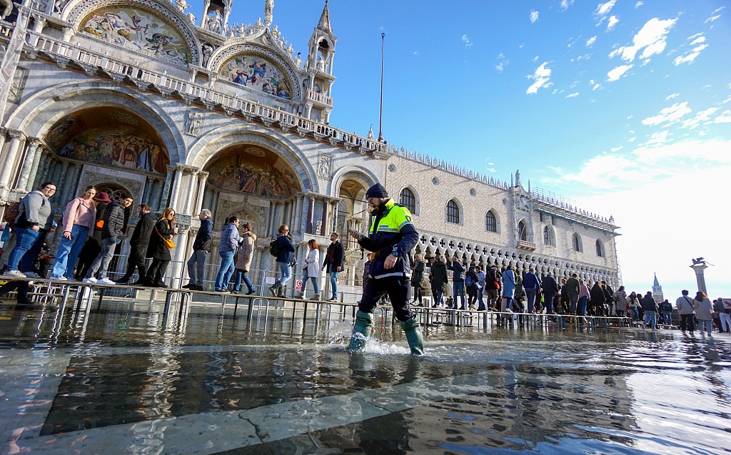 意大利威尼斯近日水位上漲,城內(nèi)部分地區(qū)積水嚴(yán)重,游客走在水中游覽觀光。聯(lián)合國教科文組織認(rèn)為,威尼斯每年接待約2800萬游客,當(dāng)?shù)夭粩噙M行城市建設(shè),導(dǎo)致過度開發(fā),市中心一些高大建筑影響城市整體形象。此外,全球變暖導(dǎo)致海平面上升,四面環(huán)水的威尼斯非常容易遭受洪水侵襲,但威尼斯當(dāng)局沒有充足、詳細(xì)的應(yīng)對方案。威尼斯正面臨“不可逆轉(zhuǎn)”的破壞風(fēng)險,意大利有關(guān)部門“缺乏戰(zhàn)略眼光”,無法解決這座水城目前面臨的種種問題。