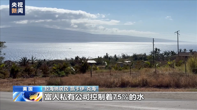 央視記者 劉旭:整個毛伊島都是異常干燥炎熱的天氣,所以在我旁邊也是連片枯草的景象。整個毛伊島西部地區(qū),包括拉海納地區(qū),淡水資源非常緊缺。當?shù)匾恍┚用竦纳钣盟窃趺磥淼哪??是在遠處山上地勢較高的地區(qū),有一些儲水設(shè)施或者蓄水池,把一些天然的降水和高山融水儲存起來,另外再通過地表徑流流經(jīng)到生活的不同區(qū)域,很多當?shù)孛癖姇惭b這樣的水閥、水表把水引到自己的家中。在8月8日拉海納大火發(fā)生之后,當?shù)氐乃Y源使用權(quán)利也出現(xiàn)很多爭議。